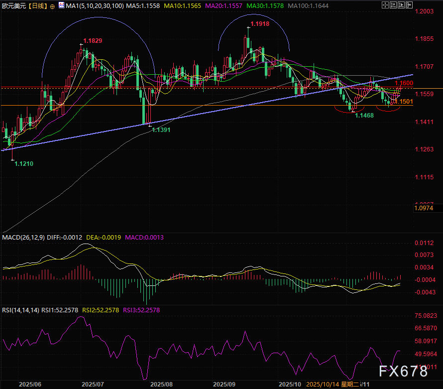 1.1600是关键压力位,是决定欧元汇价是否能由反弹转为震荡甚至反转的重要价位。