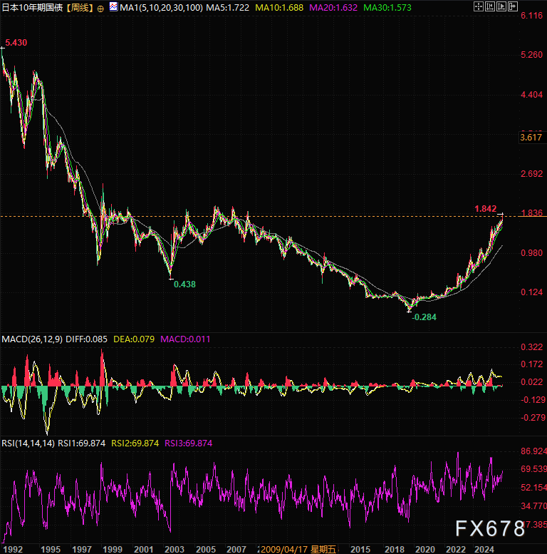 汇通财经APP讯——近期日本国债收益率呈现“高位企稳后持续上行”的特征:10年期基准品种收益率于11月20日触及年内高点后维持高位区间,截至11月下旬报1.800%左右,较9月底的1.645%显著上行;超长期国债收益率同步走高,反映市场对供给压力与政策转向的双重敏感。走势并非孤立存在,而是财政扩张、发行机制改革、货币政策正常化及外部环境变化共同作用的结果。