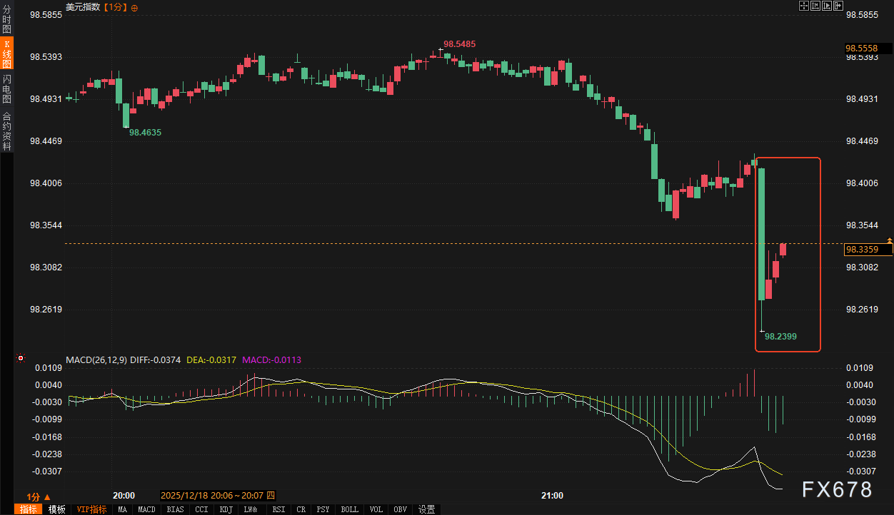 汇通财经APP讯——周四(12月18日)21:30,美国劳工统计局公布了因政府停摆而延迟的11月消费者价格指数(CPI)。数据显示,美国11月CPI同比上涨2.7%,显著低于市场预期的3.1%,也低于9月份3.0%的增幅;剔除食品和能源的核心CPI同比上涨2.6%,同样较9月的3.0%放缓。这份不及预期的通胀报告,立刻在全球外汇和债券市场掀起了波澜。